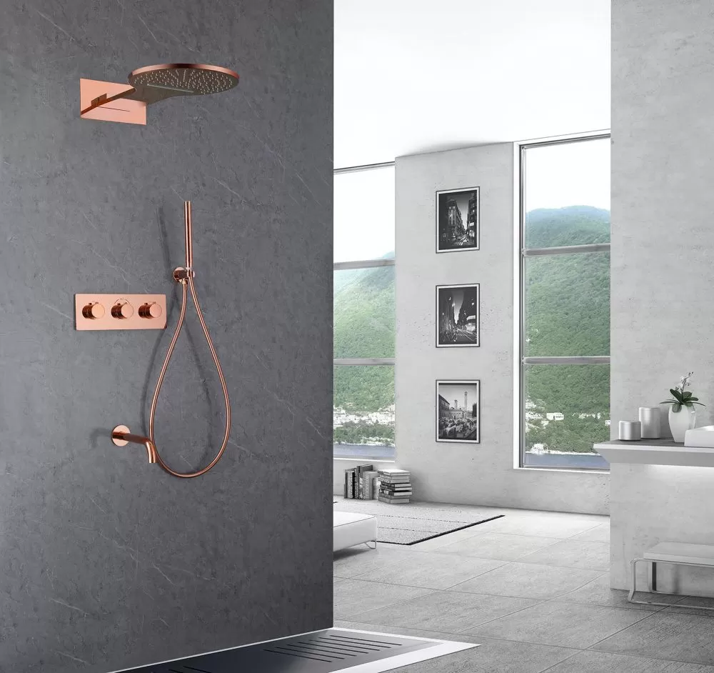 Душевая система ABBER Wasser Kreis AF8150RG скрытого монтажа с изливом, термостат, розовое золото