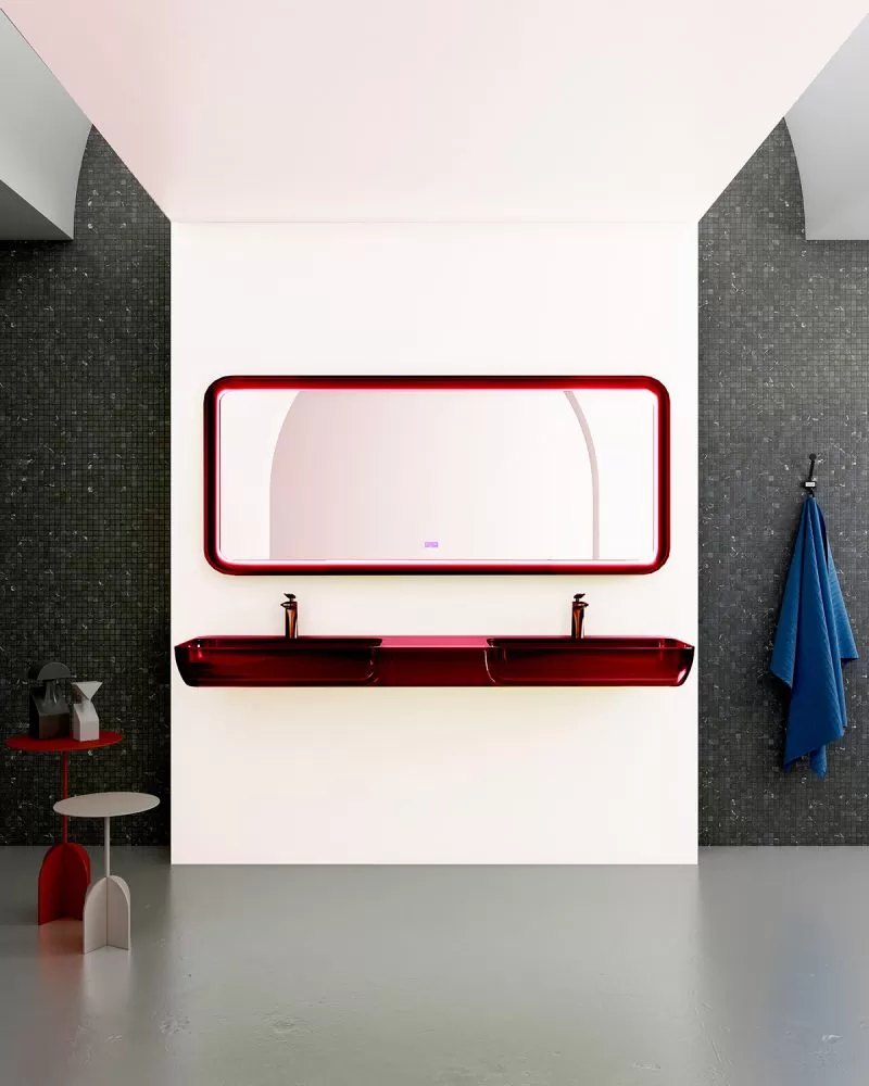 Раковина подвесная прозрачная ABBER Kristall AT2807Rubin двойная, красная