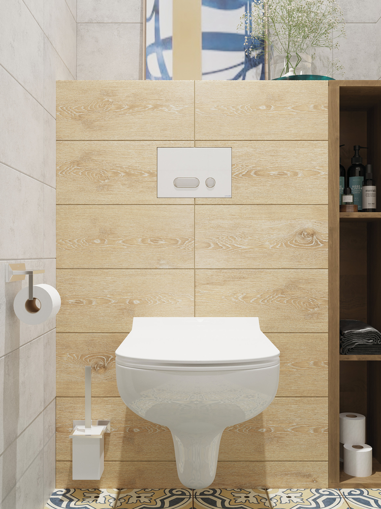 Комплект CREA SQUARE с ультратонким антибактериальным сиденьем из дюропласта с функцией плавного закрывания и легкосъемом, с инсталяцией LINK PRO и кнопкой смыва TWINS