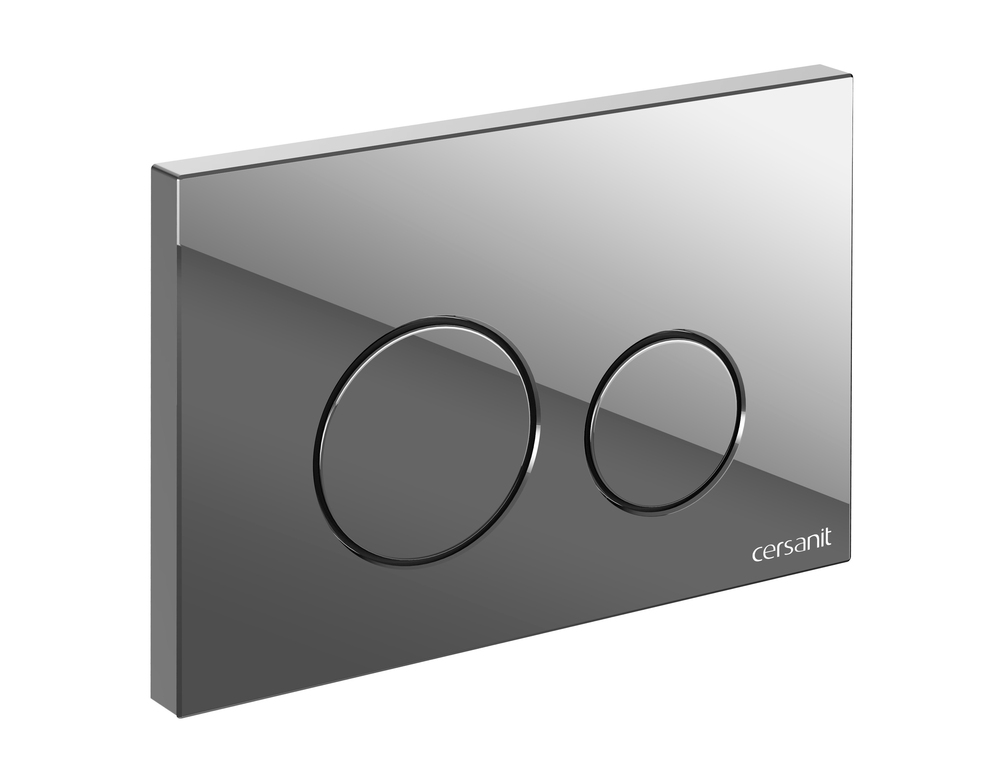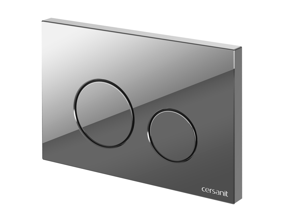 Кнопка изготовлена из пластика с глянцевым хромированным покрытием для двухуровневого механизма смыва