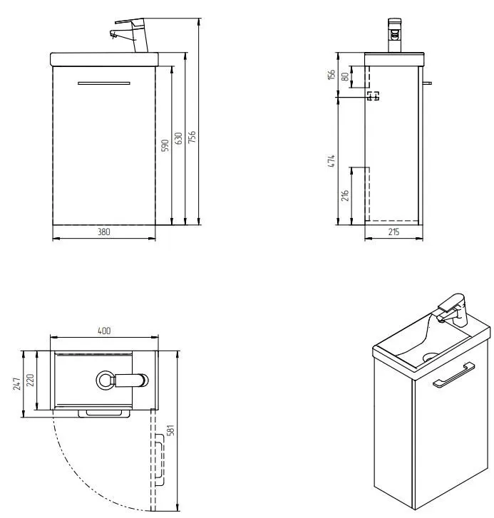 Тумба, раковина, смеситель и сифон сочетаются