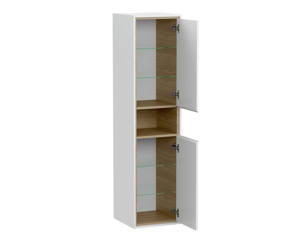 LOUNA – это коллекция, отвечающая последним тенденциям рынка: сочетание чистоты белого цвета и натурального дерева. Основной отличительной особенностью коллекции является её дизайн – сочетание белого с деревом, фрезерованная ручка, выдвижной ящик и удобная открытая полка для хранения. Пенал оборудован стеклянными полками и открытой нишей. Зеркала в коробе ЛДСП оборудованы сенсорной подсветкой.