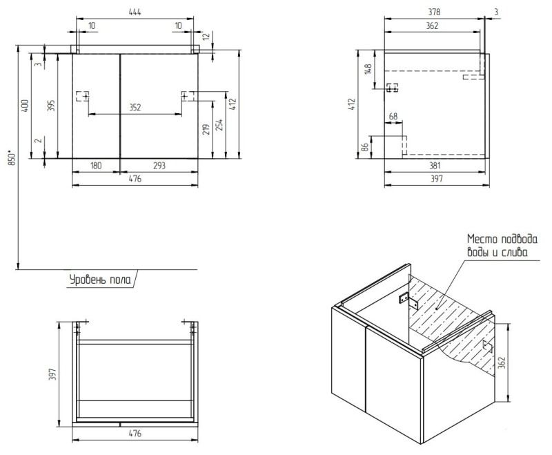 ВНИМАНИЕ: В КОМПЛЕКТАЦИЮ ДАННОГО АРТИКУЛА РАКОВИНА И СМЕСИТЕЛЬ НЕ ВХОДЯТ!