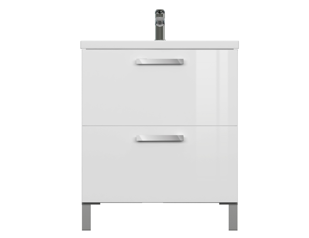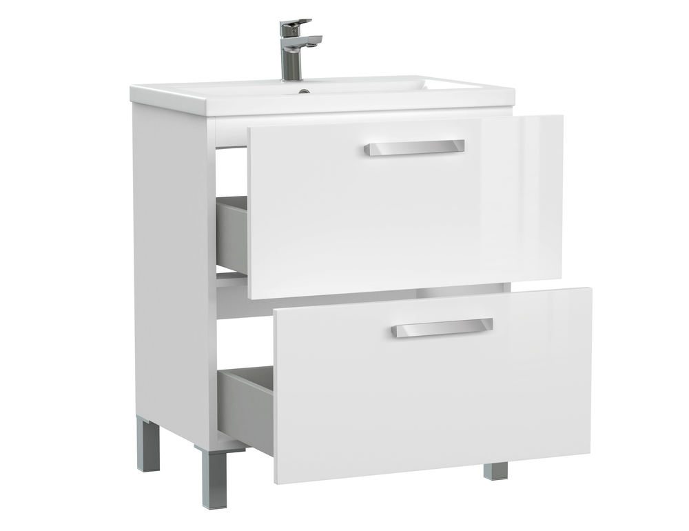 Тумба под раковину MELAR выполнена в нетеряющем актуальности белом цвете. Гладкие глянцевые фасады ящиков дополены хромированными ручками четкой геометричесокй формы. Скрытые направляющие ящиков снабжены доводчиками, что позволяет закрывать ящик мягко и бесшумно. Тумбу можно как подвешивать на стенку, так и устанавливать на ножки, что делает ее универсальным и функциональным решением для любой ванной комнаты.