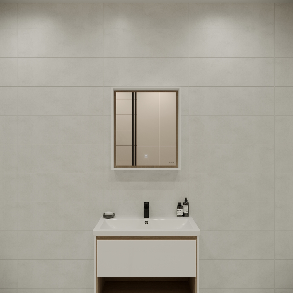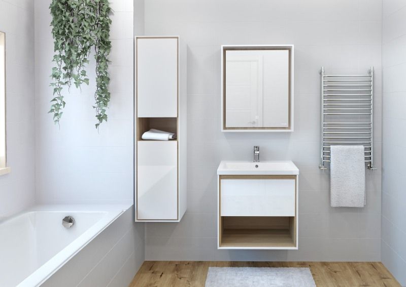 LOUNA – это коллекция, отвечающая последним тенденциям рынка: сочетание чистоты белого цвета и натурального дерева. Основной отличительной особенностью коллекции является её дизайн – сочетание белого с деревом, фрезерованная ручка, выдвижной ящик и удобная открытая полка для хранения. Пенал оборудован стеклянными полками и открытой нишей. Зеркала в коробе ЛДСП оборудованы сенсорной подсветкой.