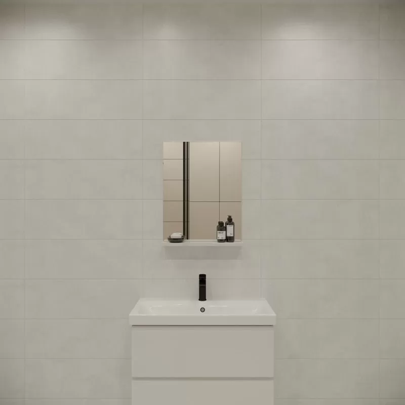 Универсальное зеркало с полочкой, которое подойдет к большинству коллекций мебели для ванных комнат.