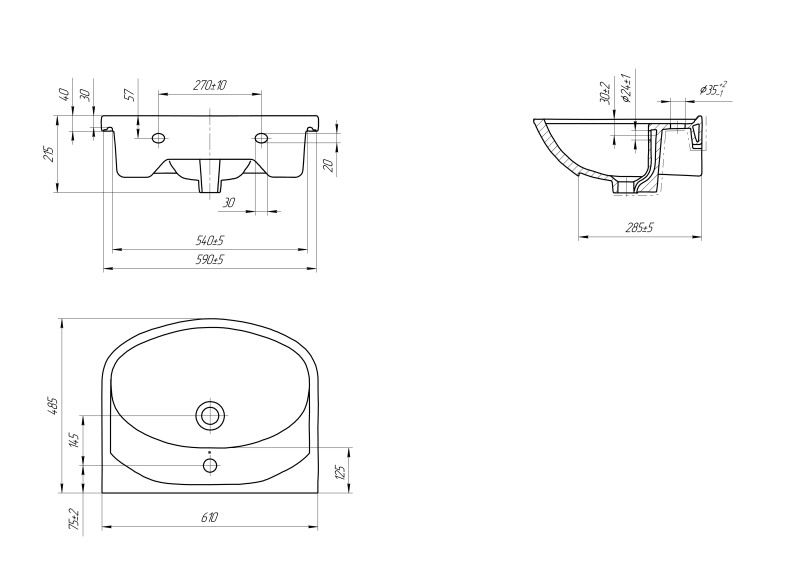 Мебельная раковина ERICA с отверстием под смеситель, размер раковины 61 см.