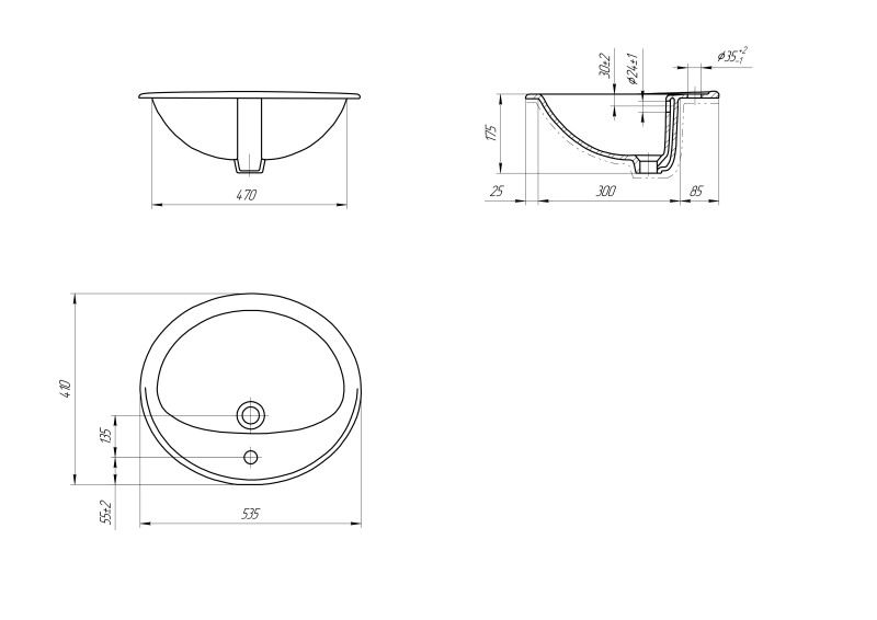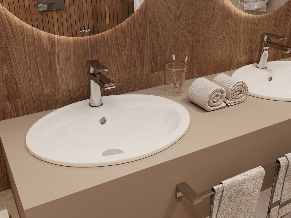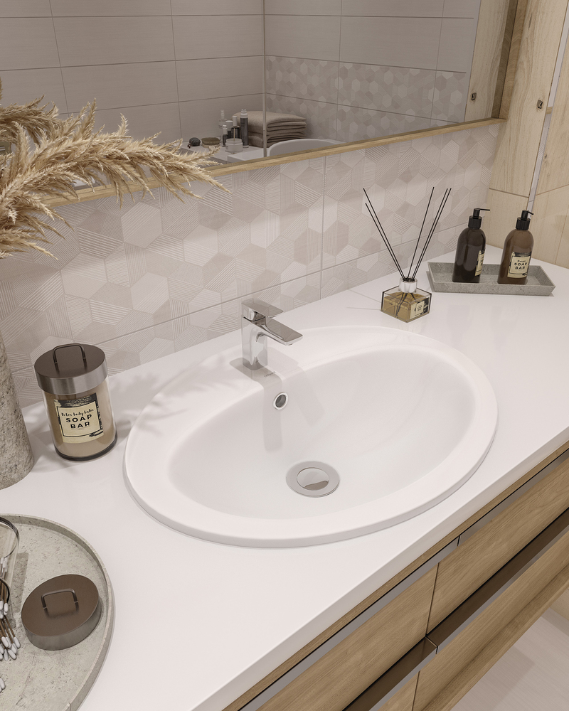 Овальная, накладная раковина на столешницу CALLA с отверстием под смеситель, размер раковины 54 см.