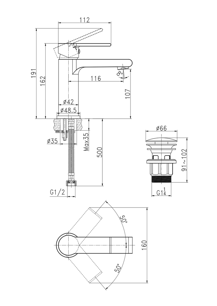 В комплект входит донный клапан, оснащённый механизмом клик-клак. Благодаря ему закрывать и открывать слив в ванне можно в одно касание.