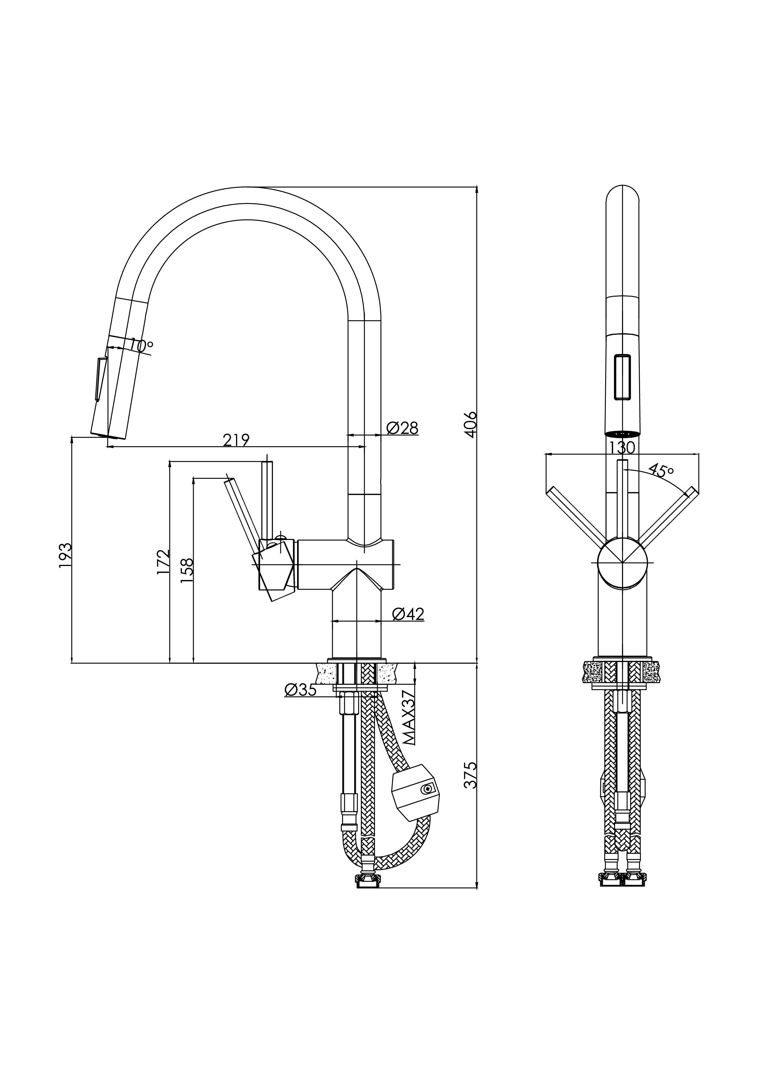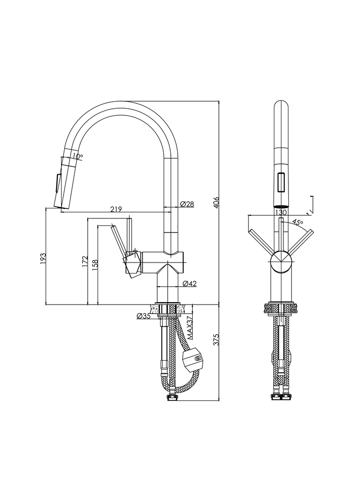 Смеситель для кухни BRASKO с выдвижным изливом сатин