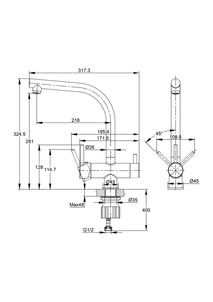 Смеситель для кухни CREA однорычажный с подключением фильтра сатин