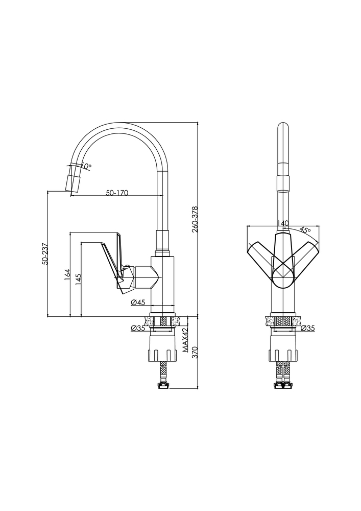 Смеситель для кухни MODUO с гибким изливом черный