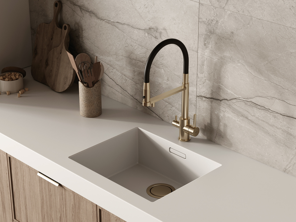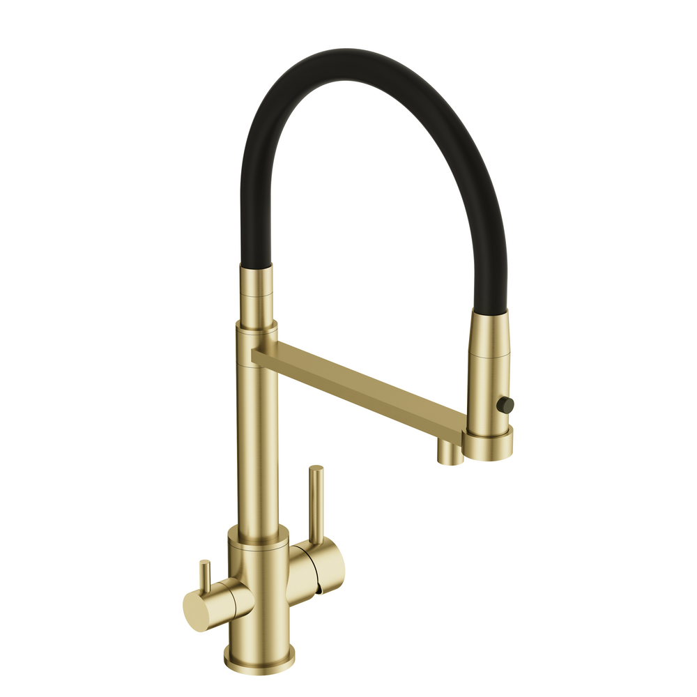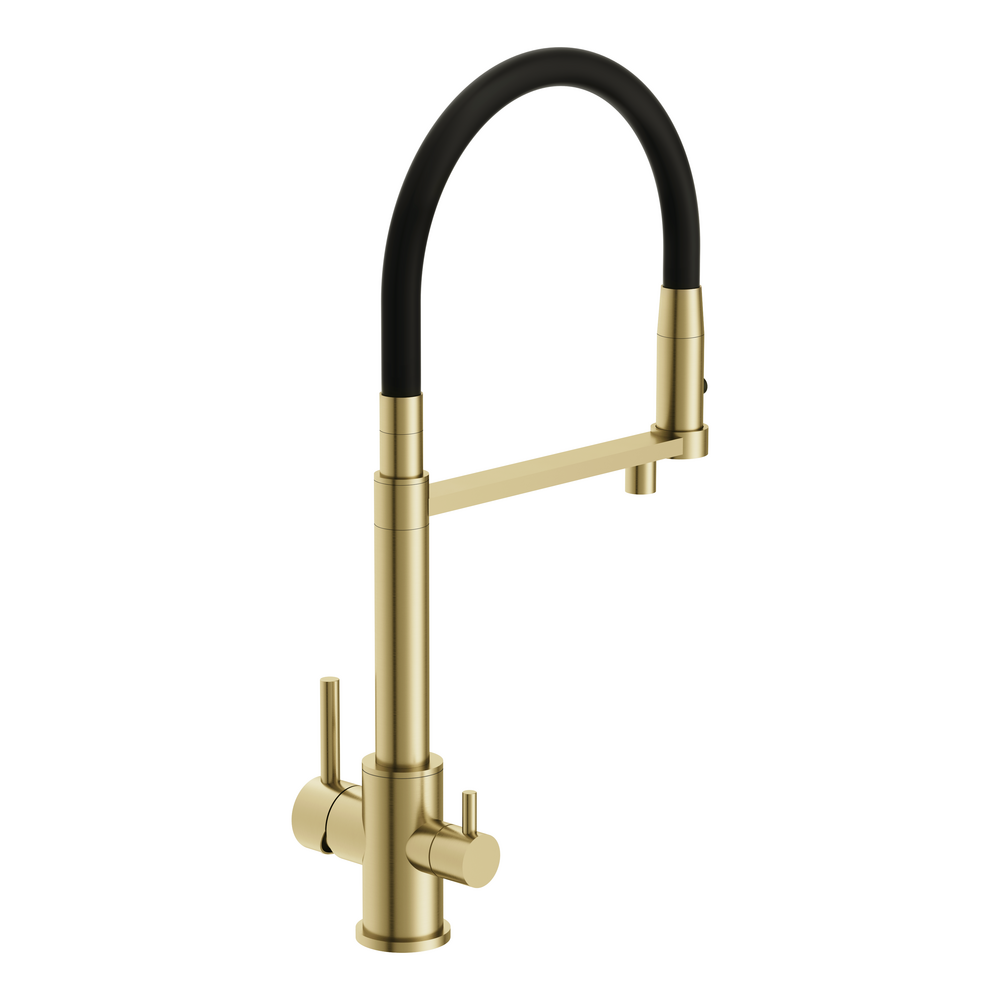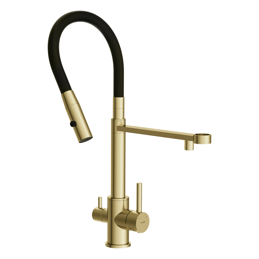 Смеситель для кухни ZEN однорычажный с подключением фильтра с гибким изливом золотой
