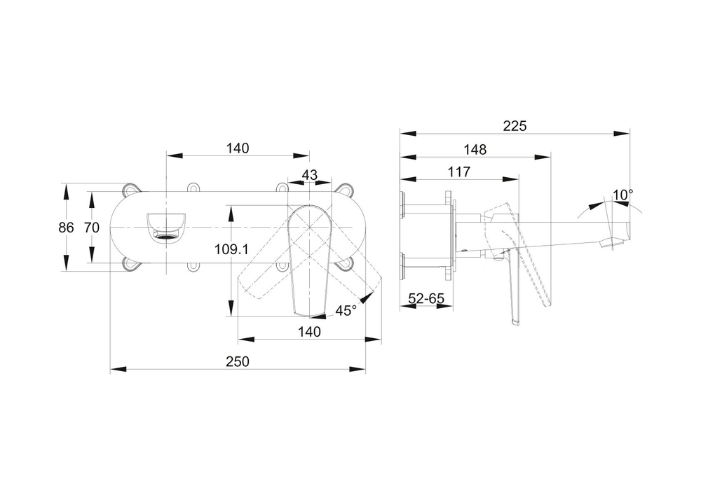 Смеситель MODUO для раковины встраиваемый