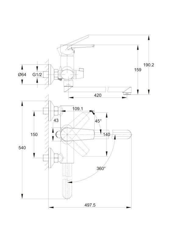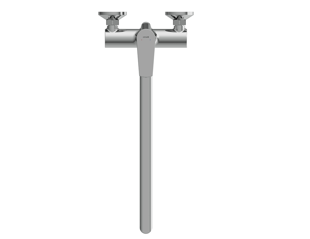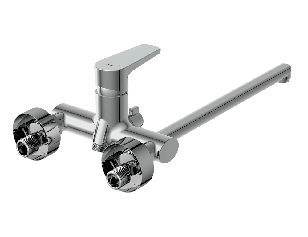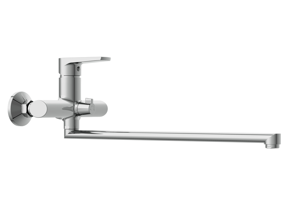 Смеситель для ванны MODUO с длинным изливом — это функциональная модель с практичными характеристиками. Рычаг смесителя обеспечивает точную регулировку температуры и напора воды благодаря особенно плавному ходу. Вода подаётся с помощью удобного поворотного переключателя.