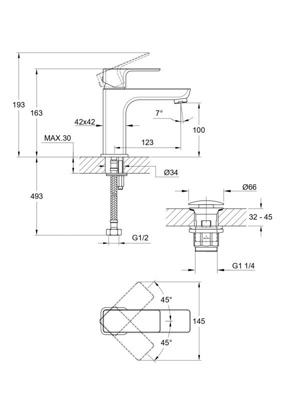 В комплекте со смесителем донный клапан с механизмом «клик-клак», который позволяет открывать и закрывать слив в одно касание.