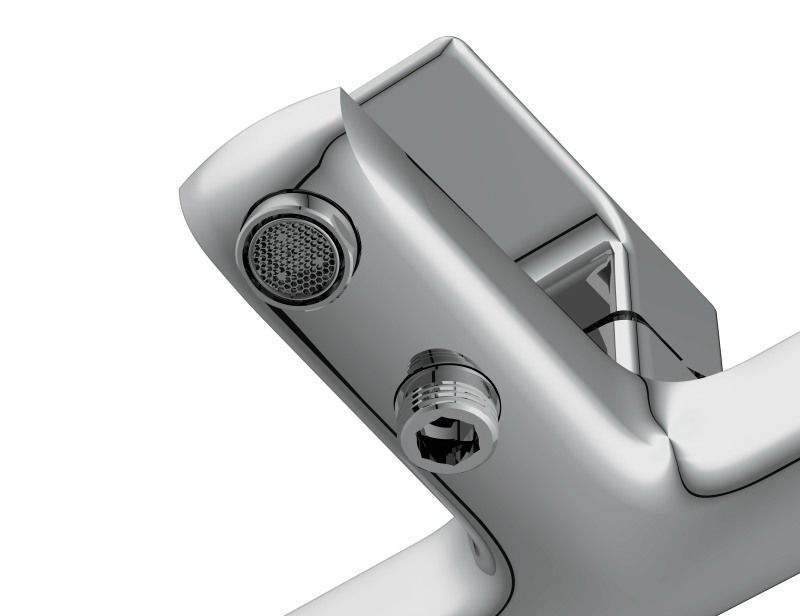 Поверхность смесителя прошла испытания в нейтрально-солевой среде, зарекомендовав себя как устойчивую к коррозии. Благодаря плавным линиям изделие легко мыть и содержать в чистоте.