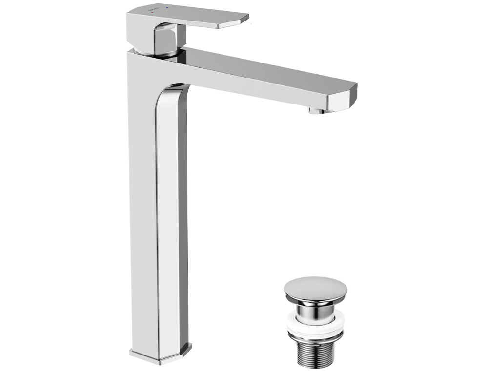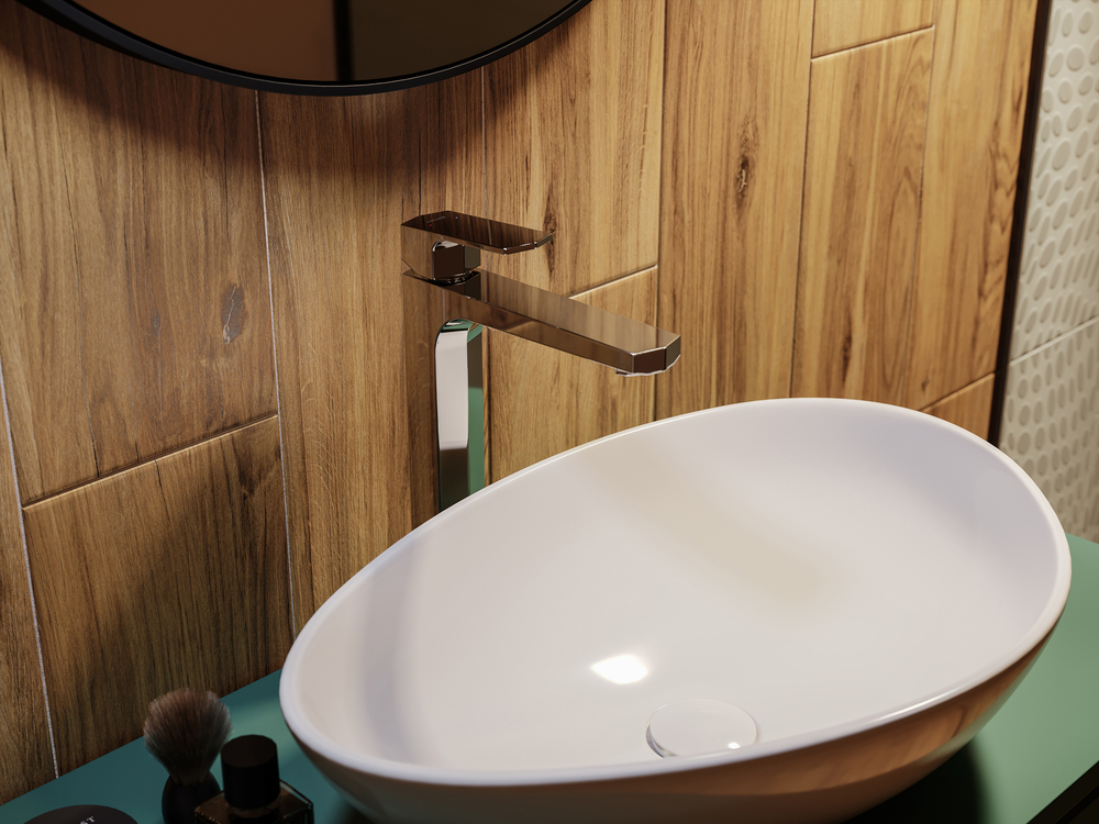 Высокий смеситель для раковины WISLA поможет украсить умывальную зону с накладной раковиной. Модель с чёткими гранями играет в лучах освещения, что придаёт ванной комнате особого шарма.