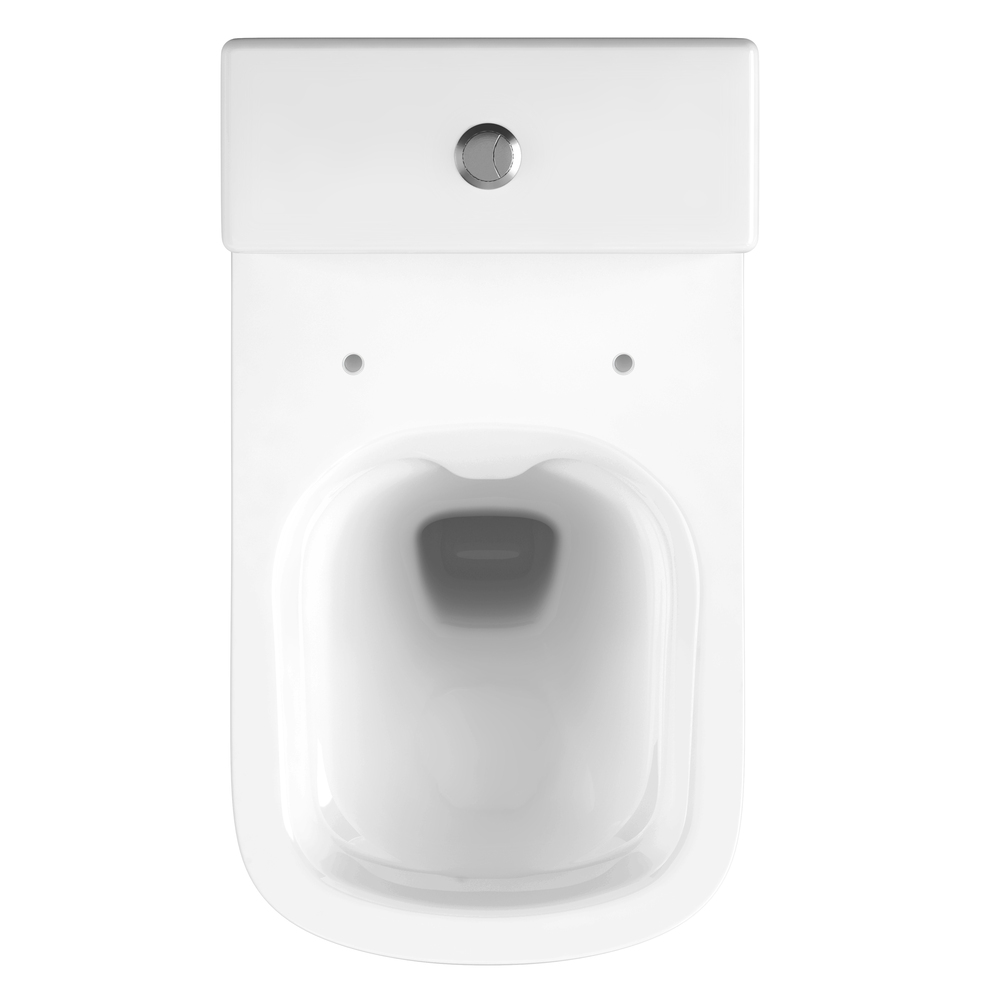 Безободковый напольный унитаз-компакт с антибактериальным сиденьем с плавным закрыванием и легкосъемным механизмом. Двухуровневая арматура с механизмом смыва OLI 3/5л.