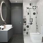 Более яркая цветовая гамма декора серии Мари Эрми сделает интерьер максимально выразительным. Плитка размером 750х250 мм подойдет для оформления помещений любой площади: небольшой ванной комнаты, гостиной, кофейни или галереи современного искусства.