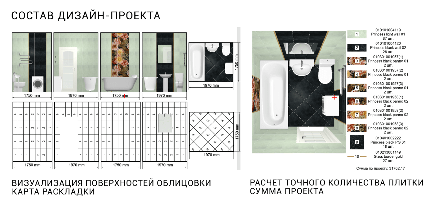 Дизайн-проект и расчет стоимости плитки (по предварительной записи)