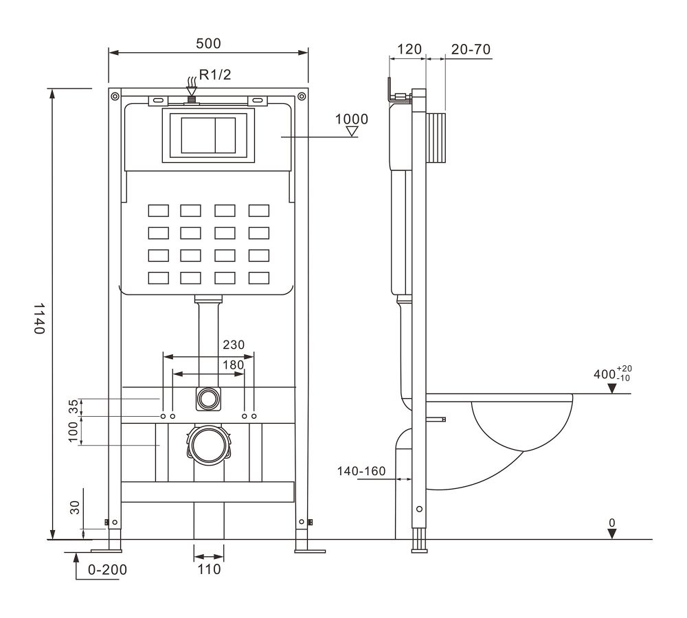Комплект подвесной унитаз ABBER Bequem AC1100 белый с инсталляцией AC0105 и кнопкой AC0120 хром
