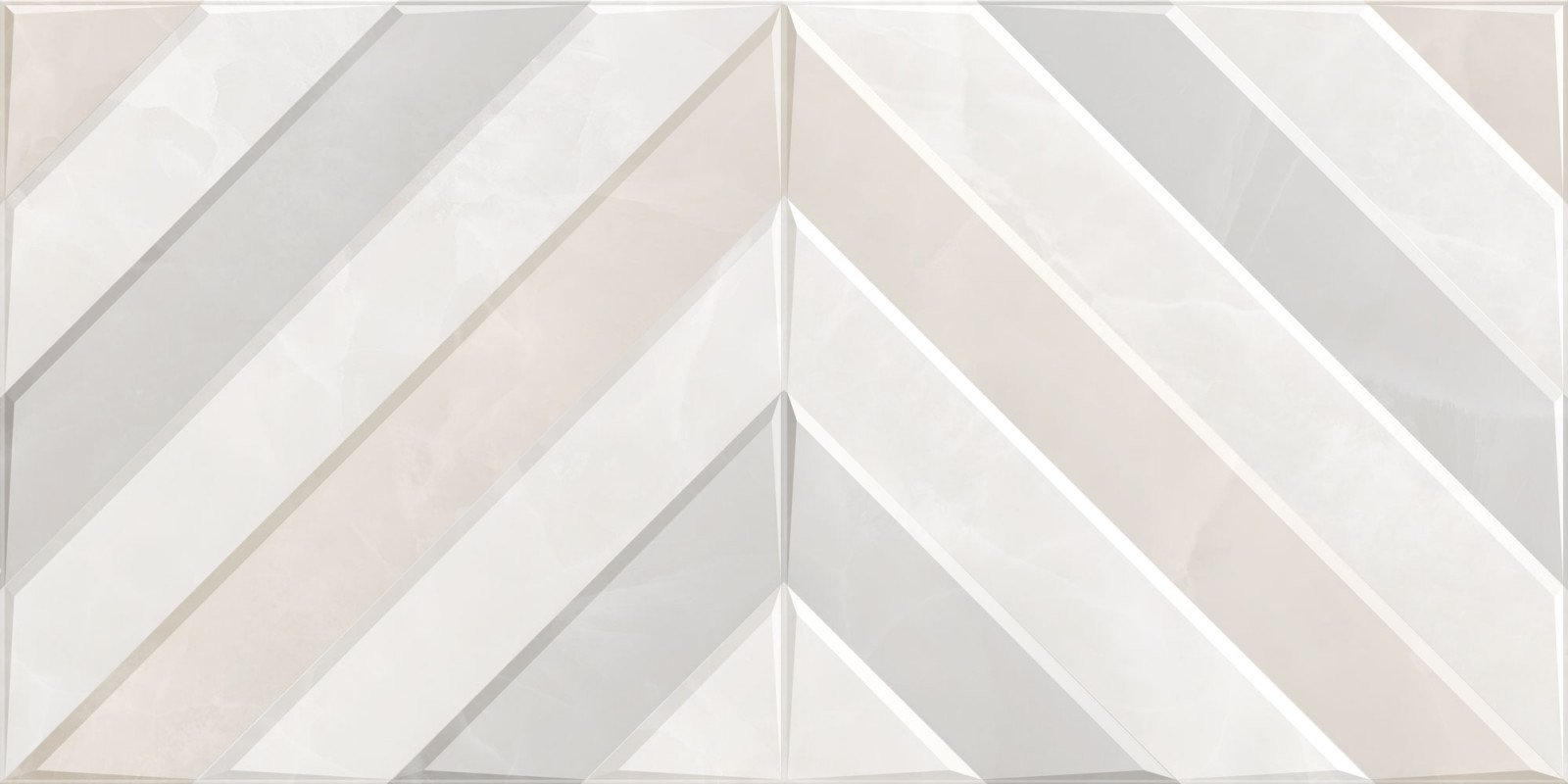 Настенная плитка Rivoli TWU09RVL407, 24,9х50 см, цвета серый, бежевый, поверхность глянцевая, рельеф, геометрический паттерн. Коллекция керамической плитки для ванной Риволи (Alma Ceramica).