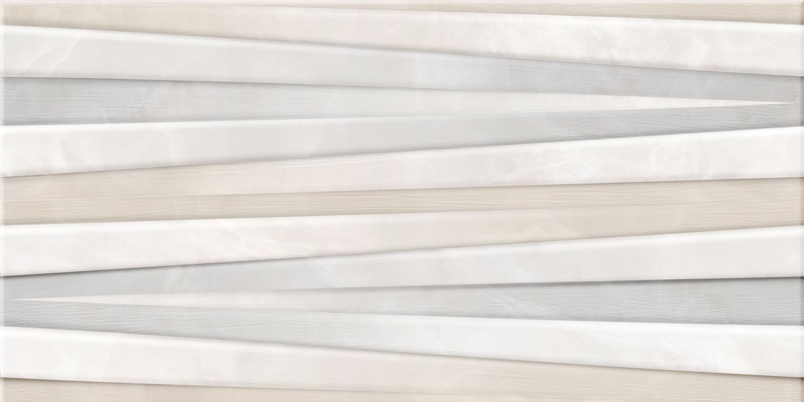 Настенная плитка Rivoli TWU09RVL704, 24,9х50 см, цвета серый, бежевый, поверхность глянцевая, рельеф, геометрический паттерн. Коллекция керамической плитки для ванной Риволи (Alma Ceramica).