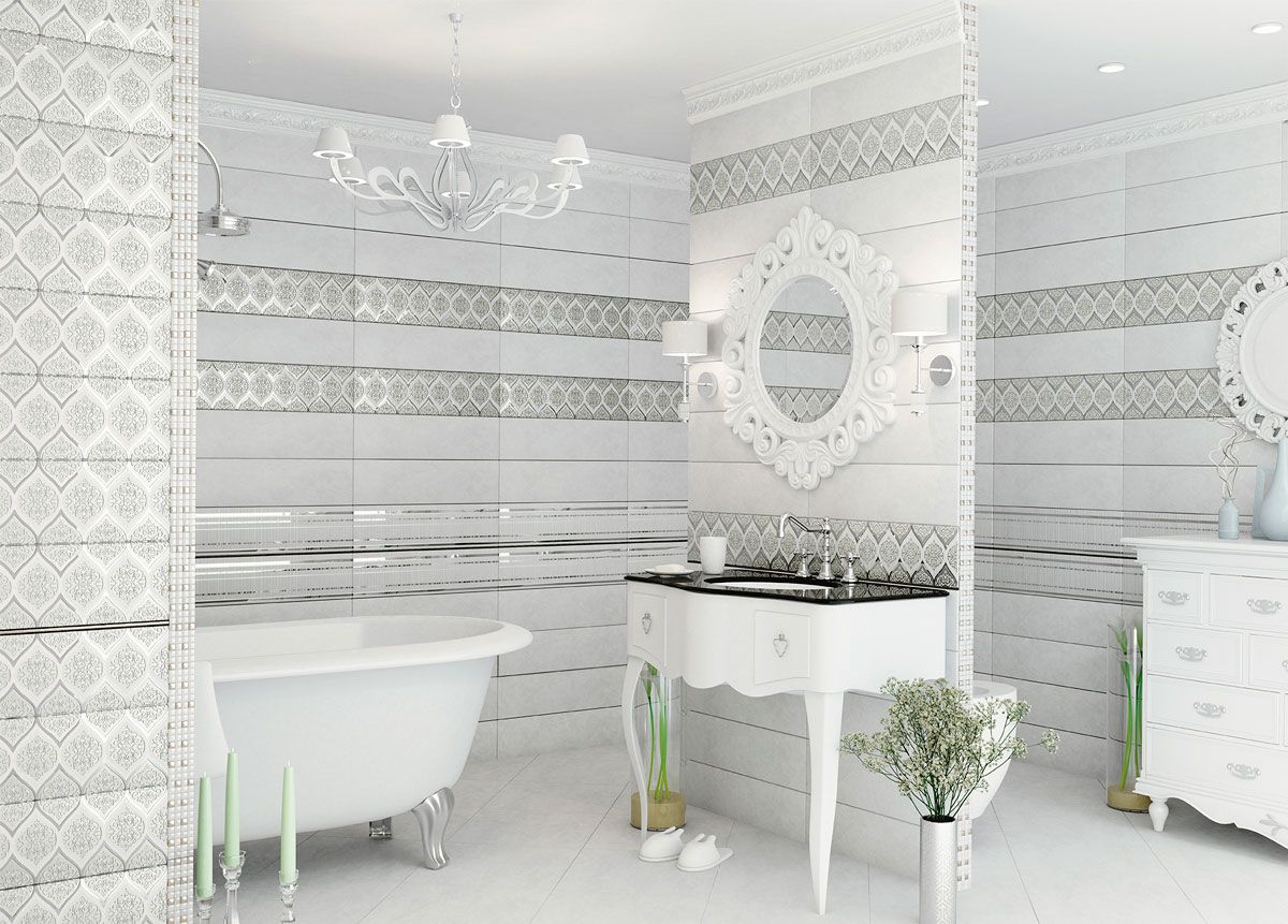 Белла / Bella от Altacera - коллекция керамической плитки для ванной комнаты. Коллекция состоит из двух декоративных вставок, выполненных в чистых белоснежных оттенках. Исполненные в классическом стиле, декоры отличаются особой выразительностью и элегантностью. С их помощью можно создать нежный и богатый интерьер на любой вкус. Вставки дополнены двумя видами мозаики и платиновым бордюром. Напольная плитка предложена в двух цвета х Antre Black и Antre White.