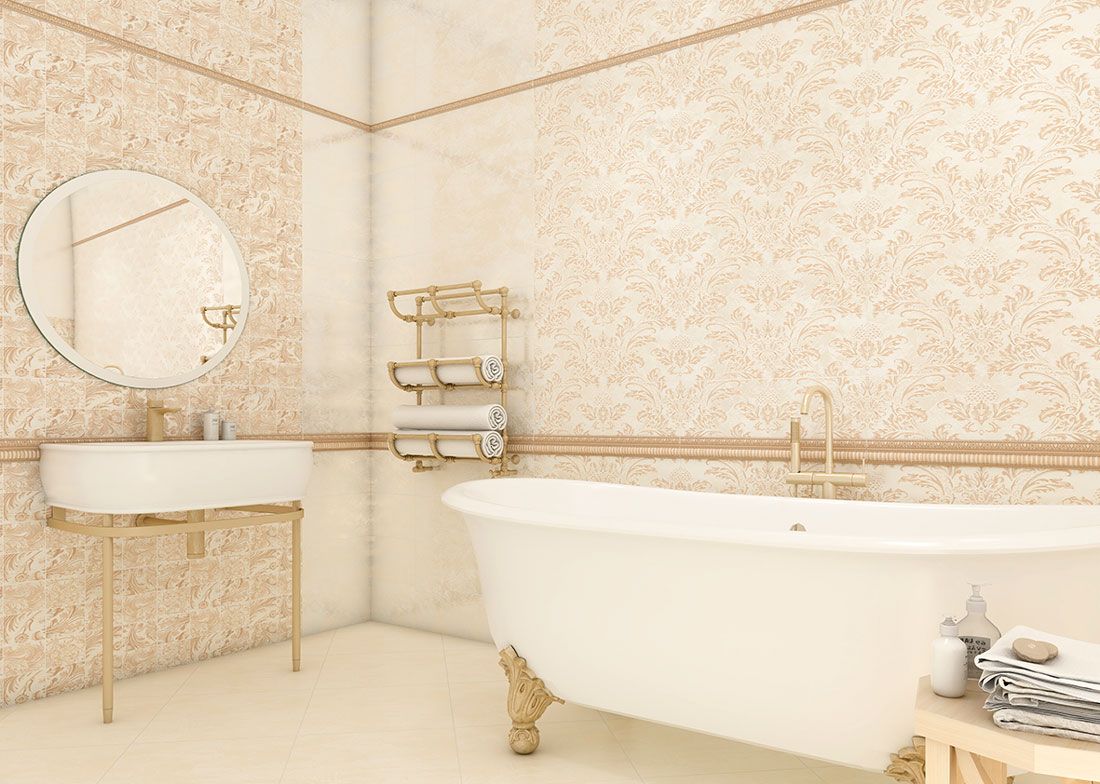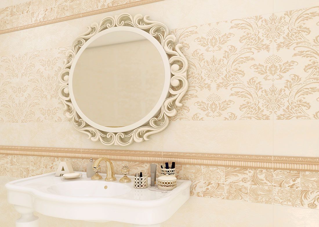 Режина / Rejina от Altacera - коллекция керамической плитки для ванной комнаты в оттенках бежевого цвета. Декоры Rejina и Dream — это роскошная классика в ультрамодном стиле барокко, мотивы декоров наполнят интерьер уютом и гармонией, стремлением к величию и пышности. Плитка коллекции имеет матовую поверхность.