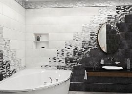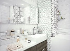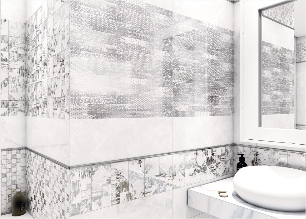 Веста Сильвер / Vesta Silver от Altacera - коллекция керамической плитки для ванной комнаты. Коллекция Vesta Silver в формате 600х200 – это стильная лаконичность благородных оттенков платины в сложных переливающихся рисунках декоров, которая воплощает неповторимую футуристическую атмосферу хай-тека. Бордюр Tenor Platina - финальная и блестящая нота в симфонии играющих в зеркальных материалах бликов. А завершает образ серебристая мозаика Silver Vesta. Плитка коллекции имеет полуглянцевую поверхность.