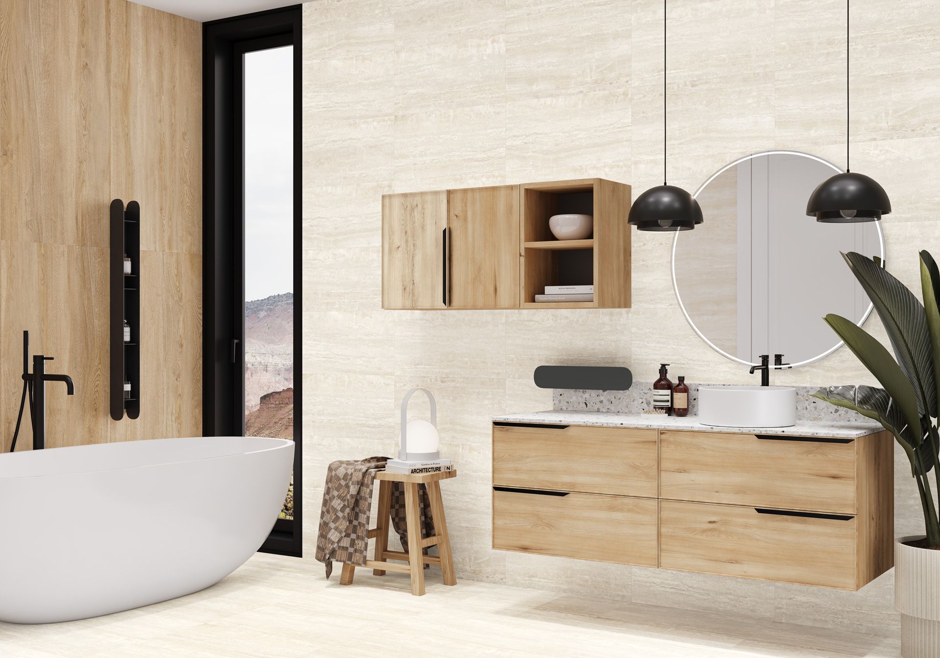 Модная коллекция под травертин в теплых оттенках. Травертин широко применяется в дизайне интерьеров благодаря своей природной красоте и универсальности. Не ректифицированные края и матовая поверхность. Комбинация травертина коллекции Rim и текстурой дерева серии Goa создаст теплый и уютный интерьер с природной эстетикой.