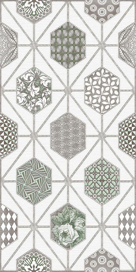 Настенный декор Devore Light Geometria 31,5x63 см, толщина 9,5 мм, поверхность полуматовая, микрорельеф, узор пэчворк, под текстиль. Коллекция керамической плитки для ванной комнаты Деворе (Azori).