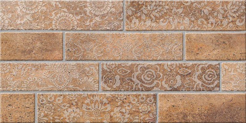 Настенная плитка Belani Брик коричневый декор 01 30х60 см, поверхность матовая, рельефная, под кирпич, кирпичную кладку.