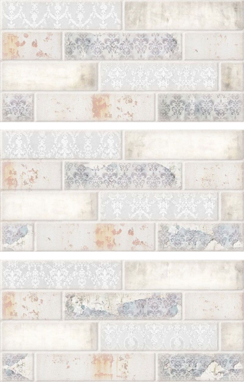 Настенная плитка Belani Декупаж микс 30х60 см, поверхность матовая, рельефная, под кирпич, кирпичную кладку, несколько вариантов рисунка в миксе.