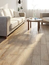 Дуб от Belani (Беларусь) – глазурованный керамогранит, напольная плитка формата 151х600 мм, под натуральное дерево, в оттенках бежевого и коричневого. Степень износостойкости 3. Плитка имеет матовую поверхность.