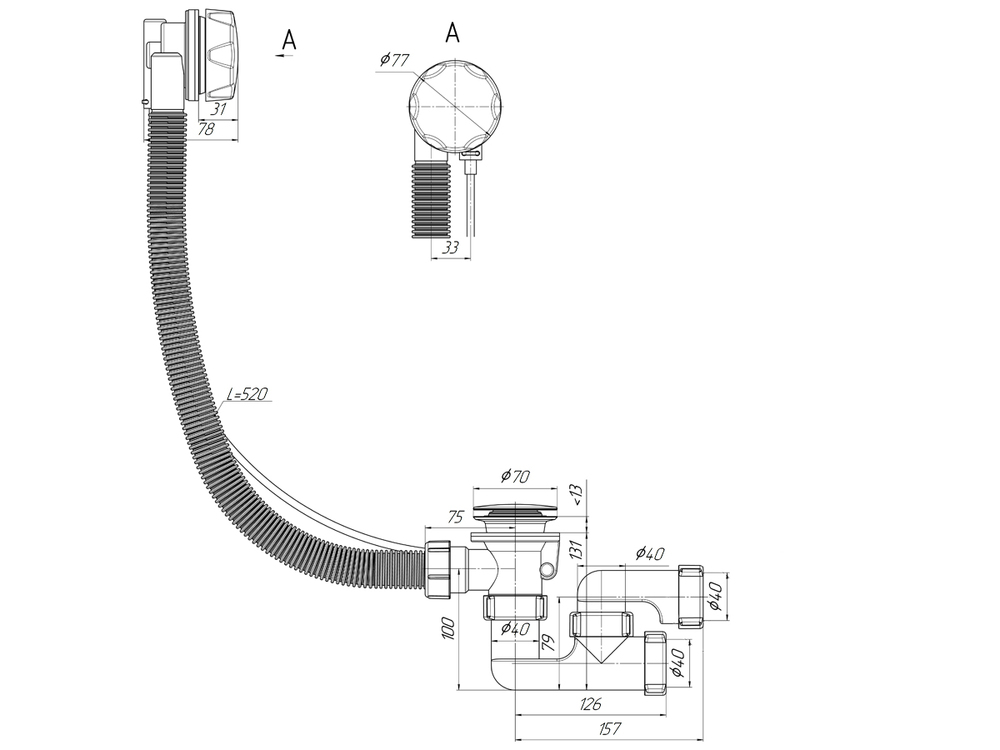Сифон для ванны SMART универсальный полуавтомат