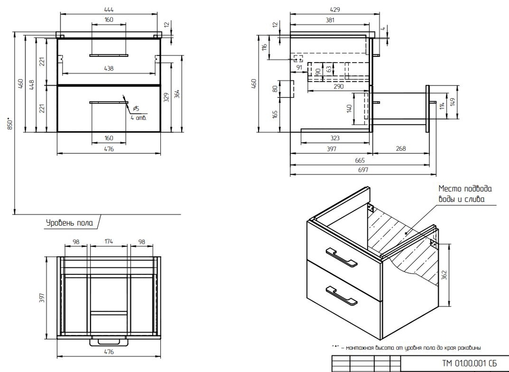 ВНИМАНИЕ: В КОМПЛЕКТАЦИЮ ДАННОГО АРТИКУЛА РАКОВИНА И СМЕСИТЕЛЬ НЕ ВХОДЯТ!