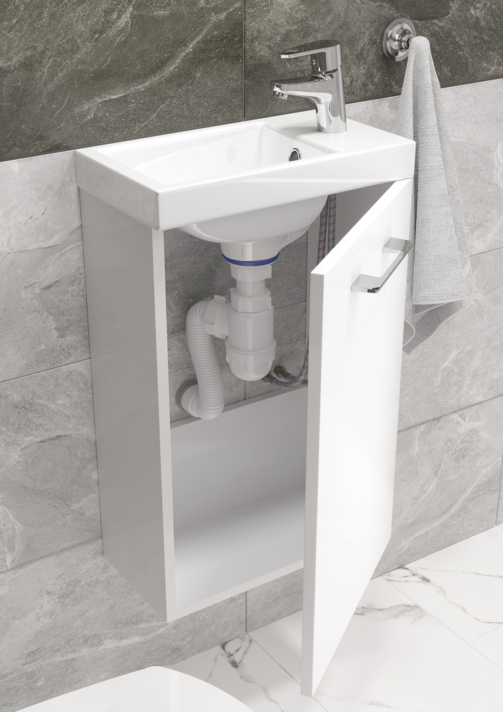 Тумба, раковина, смеситель и сифон сочетаются