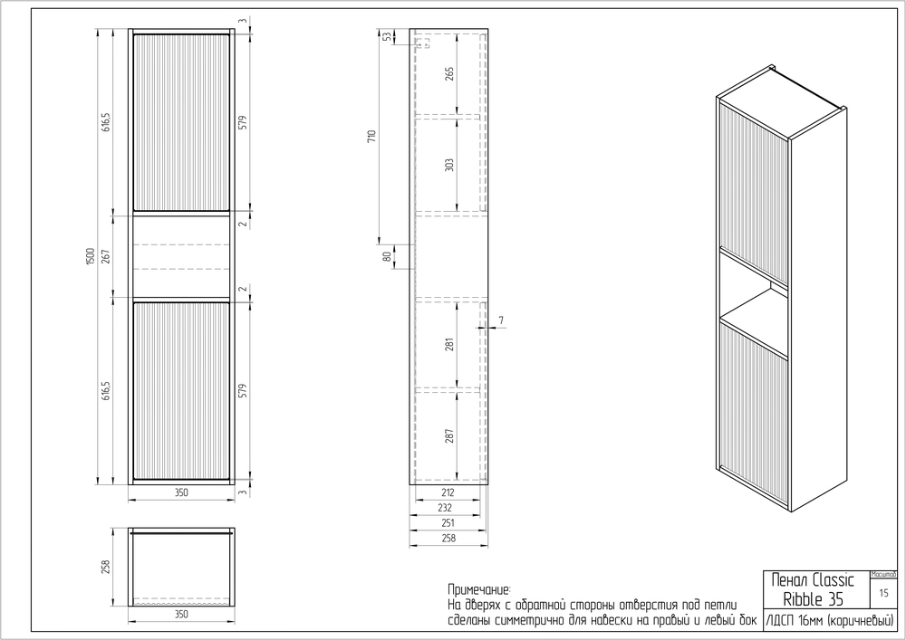 Пенал CLASSIC RIBBLE 35 коричневый
