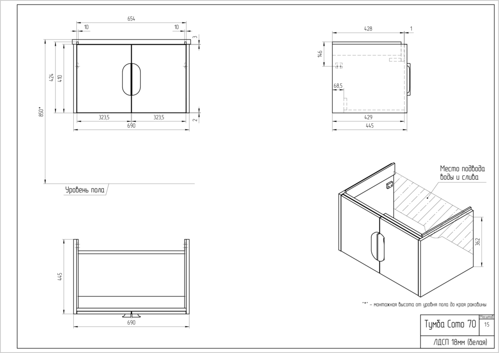 Тумба COMO 70 белый
