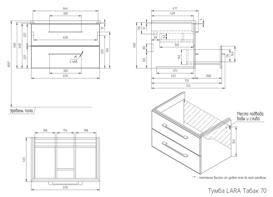 Тумба LARA 70 орех табак
