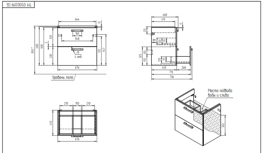 ВНИМАНИЕ: В КОМПЛЕКТАЦИЮ ДАННОГО АРТИКУЛА НОЖКИ, РАКОВИНА И СМЕСИТЕЛЬ НЕ ВХОДЯТ!