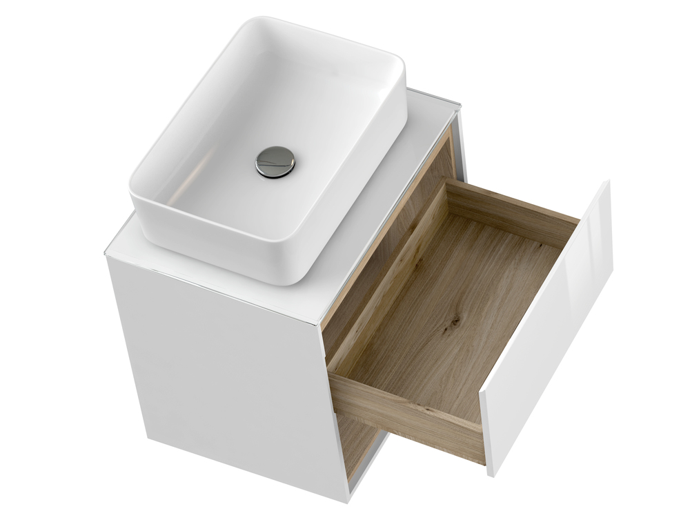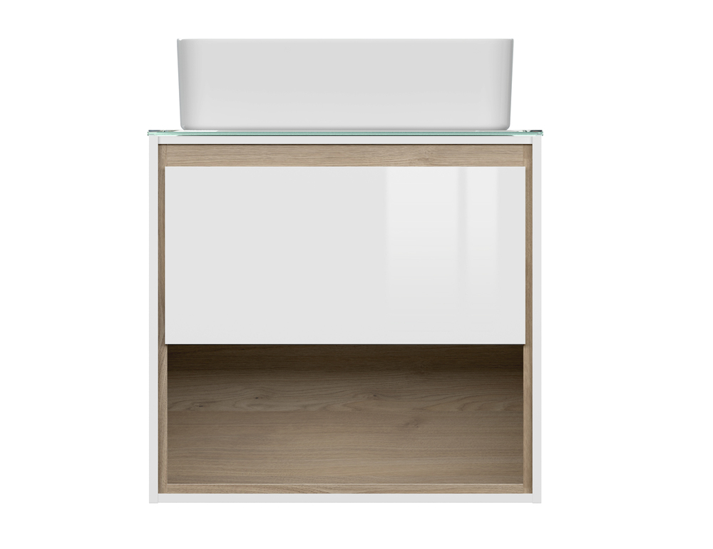 LOUNA – это коллекция, отвечающая последним тенденциям рынка: сочетание чистоты белого цвета и натурального дерева. Основной отличительной особенностью коллекции является её дизайн – сочетание белого с деревом, фрезерованная ручка, выдвижной ящик и удобная открытая полка для хранения. К тумбе рекомендуем накладные раковины и высокие смесители коллекций CERSANIT.
