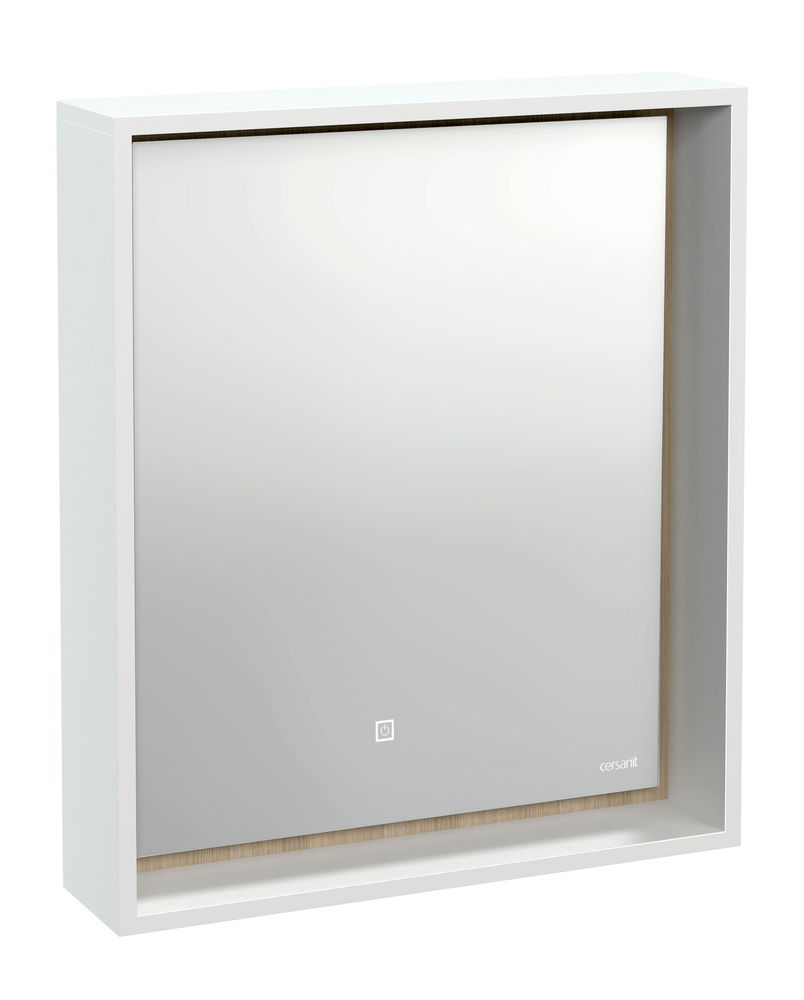 LOUNA – это коллекция, отвечающая последним тенденциям рынка: сочетание чистоты белого цвета и натурального дерева. Основной отличительной особенностью коллекции является её дизайн – сочетание белого с деревом, фрезерованная ручка, выдвижной ящик и удобная открытая полка для хранения. Пенал оборудован стеклянными полками и открытой нишей. Зеркала в коробе ЛДСП оборудованы сенсорной подсветкой.
