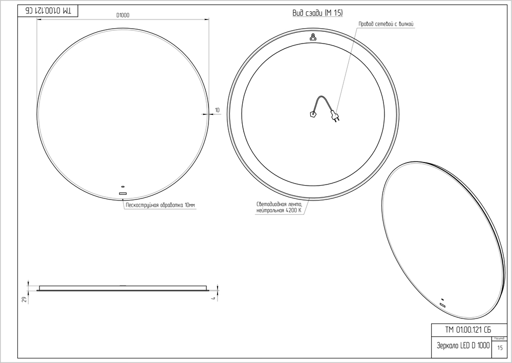 Светодиодная подсветка с приятным нейтральным оттенком создаёт эффект парения. Она вмонтирована в торец зеркала и дополнительно закрыта силиконовой вставкой, благодаря чему свет равномерно рассеивается в пространстве, а оборудование получает дополнительную защиту от влаги.