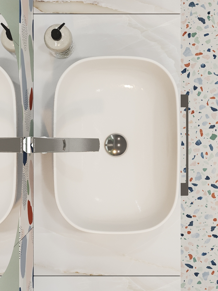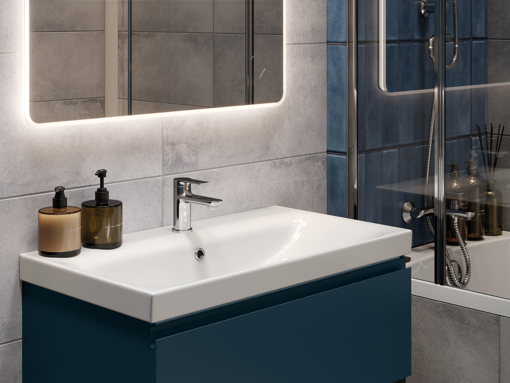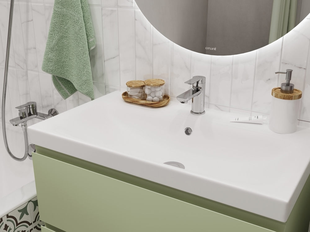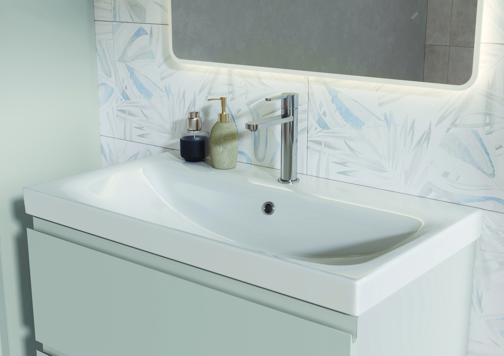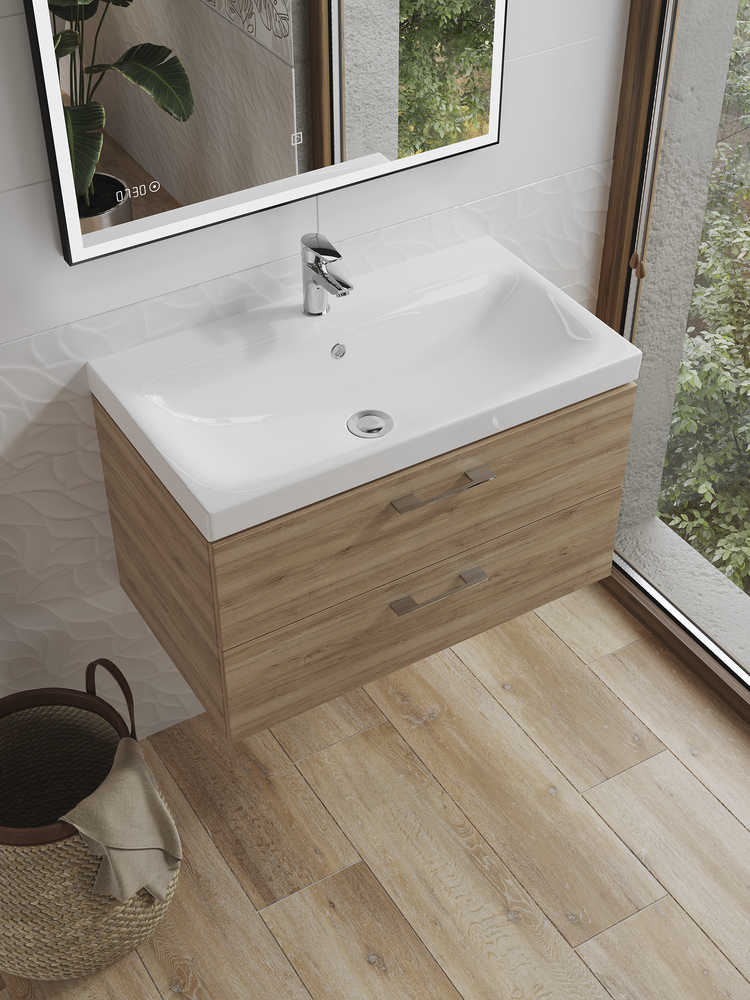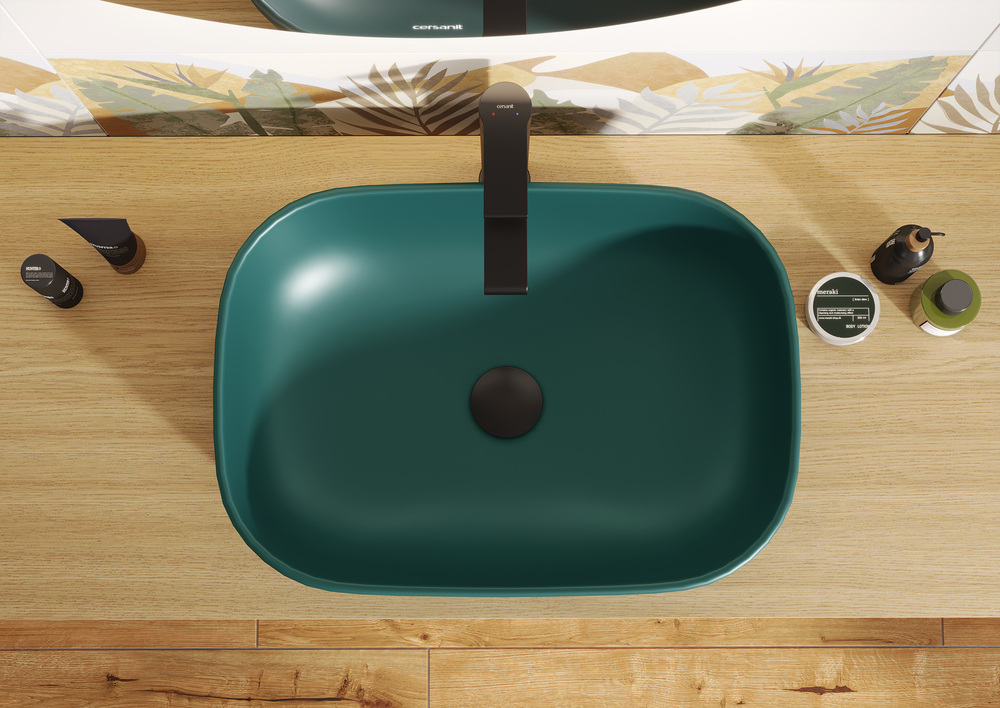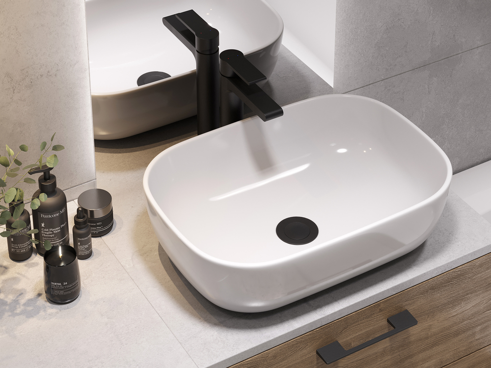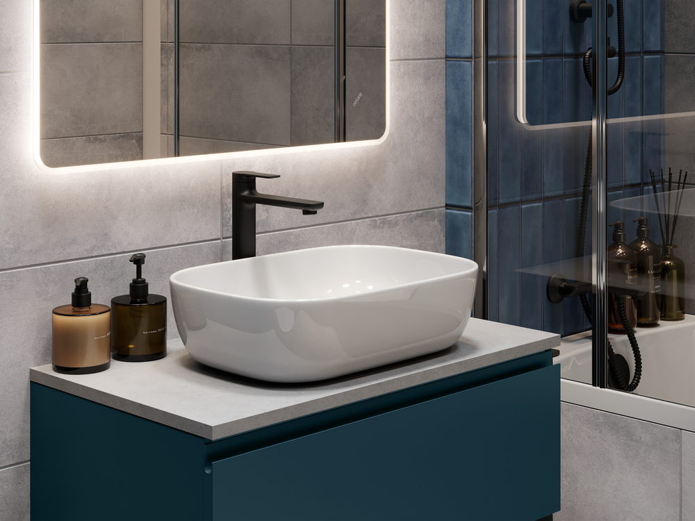Прямоугольная мебельная раковина MODUO с отверстием под смеситель, размер раковины 40 см.