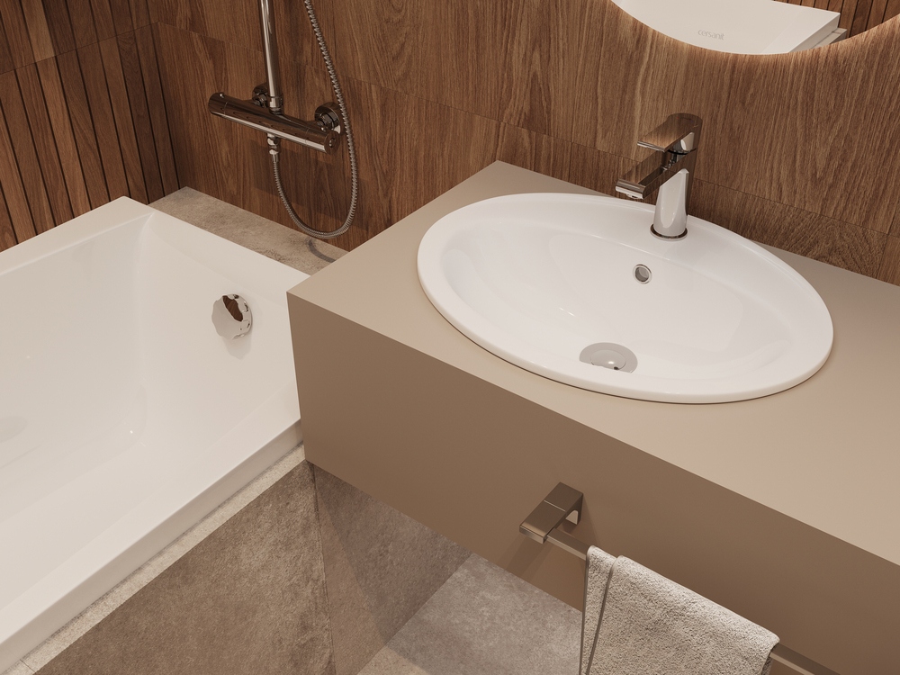 Овальная, накладная раковина на столешницу CALLA с отверстием под смеситель, размер раковины 54 см.