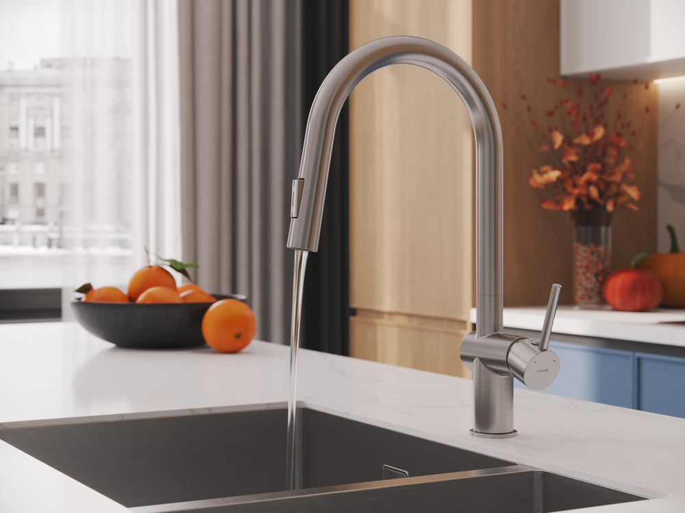 Смеситель для кухни BRASKO с выдвижным изливом сатин