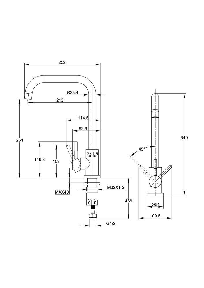 Смеситель для кухни COMO с п-образным изливом хром